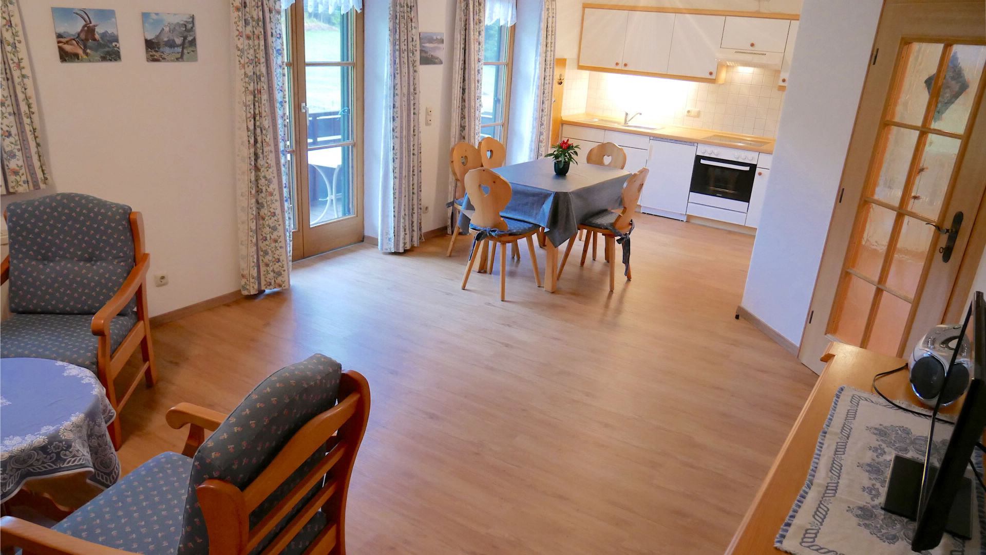 Wohnküche, Schlaf- & Kinderzimmer separat, großzügiges Bad mit Dusche/WC, Zentralheizung, Parkplätze, AT-TV, Gästewaschküche, Tisch- und Bettwäsche vorhanden, Geschirr-, Dusch- & Handtücher vorhanden, Fön & Kosmetikspiegel, Nichtraucherhaus.
